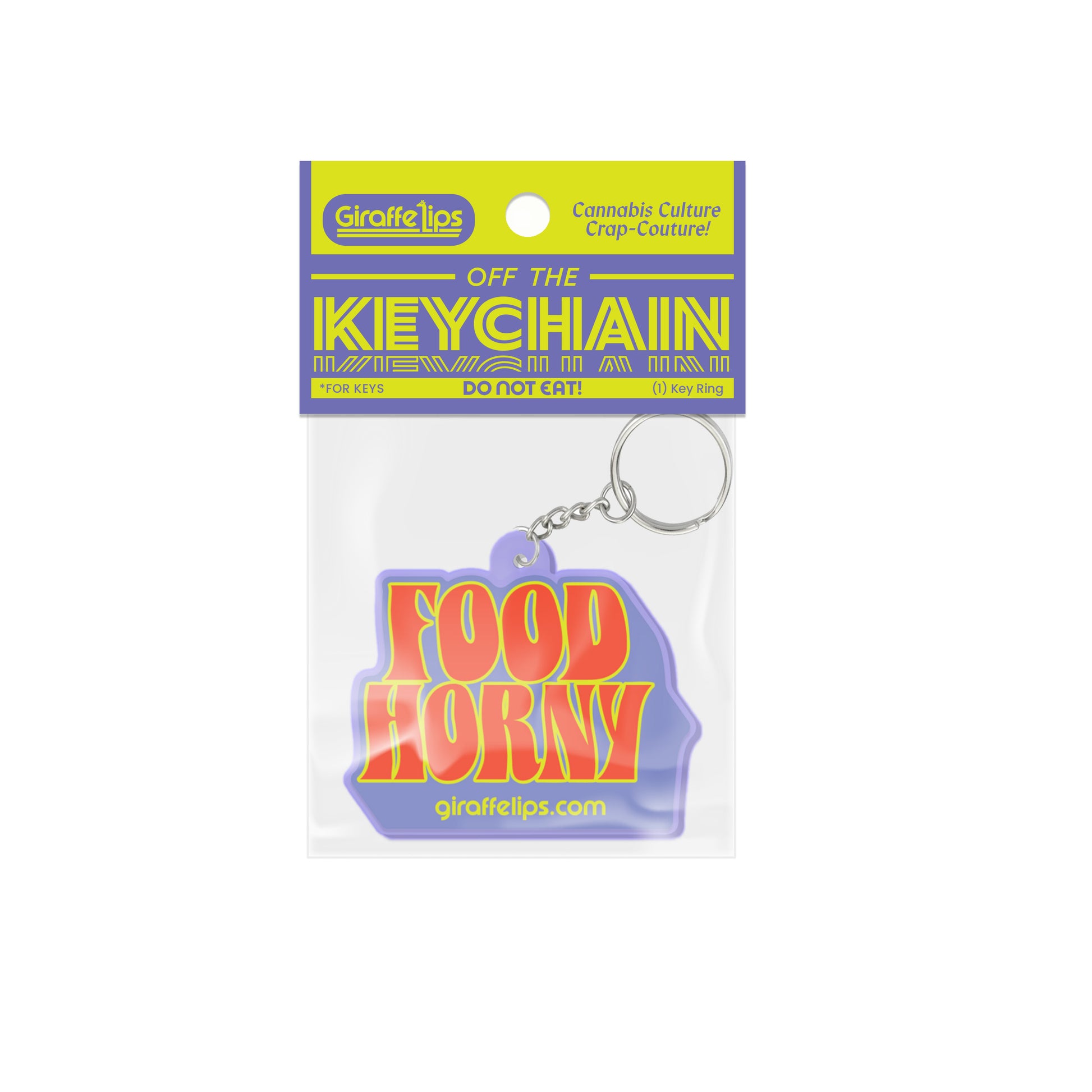 -Acrylic keychain w/ hand-embellished purple felt backing